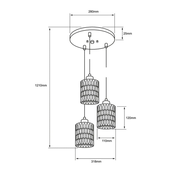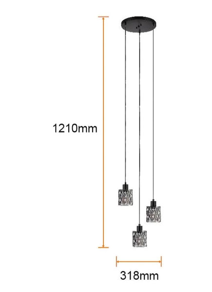 Lámpara colgante para 3 luces en acabado negro para uso interior