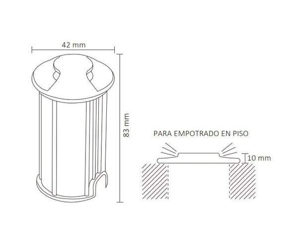 Lámpara de piso empotrable en acabado negro uso interior/exterior.