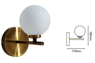 Lámpara de Lujo para Pared en Acabado Oro Antiguo con Esfera de Cristal Opalino