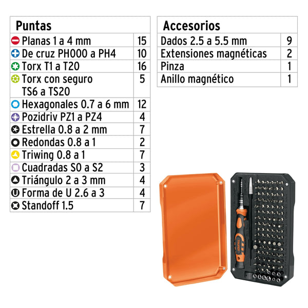 Desarmador de Precisión con 106 Piezas Intercambiables